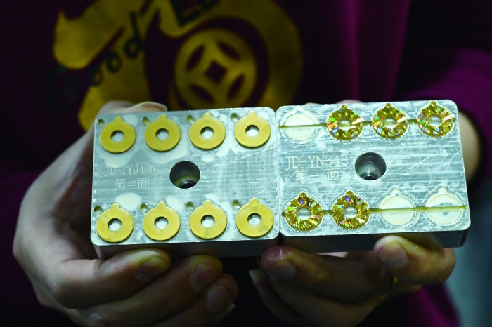 在深圳市龙岗区的峰汇珠宝文化产业园,一间油压工艺厂房的几十台机器里开机的只有5台;反观相邻的智能制造车间里,40台五轴机床正在运转。